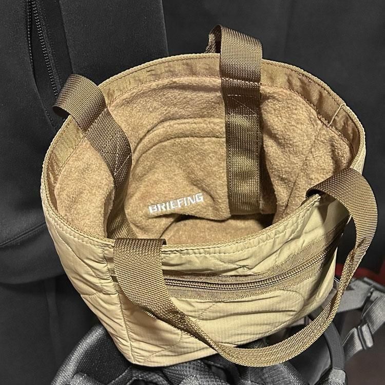 表面は暖かみのあるフリース素材、裏面はミリタリーな雰囲気のひょうたん柄キルトを使用しています。