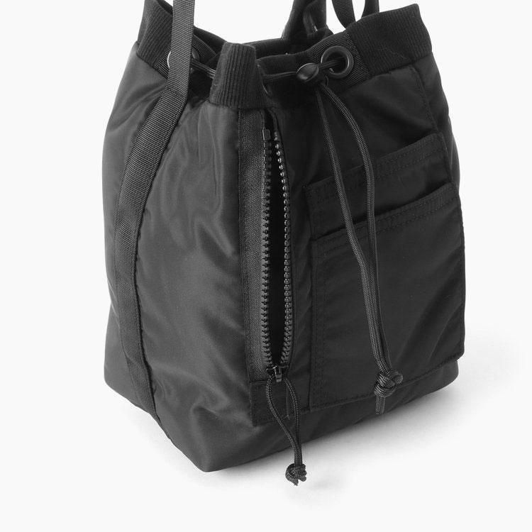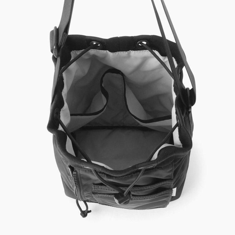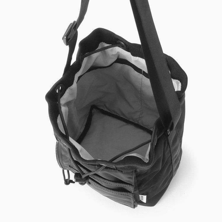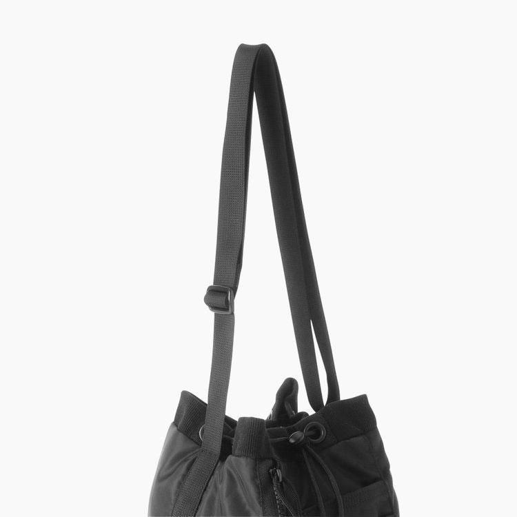 コンパクトサイズの巾着型ショルダーバッグ。