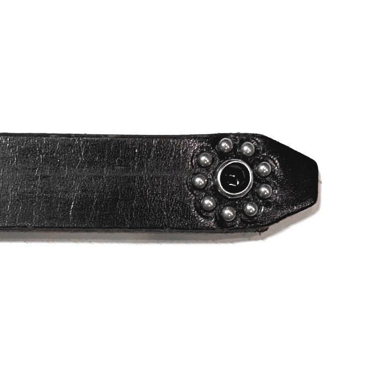 ベルト幅は0.75inch(約1.9cm)で、エンド部分にワンポイントでフラワースタッズにストーン。