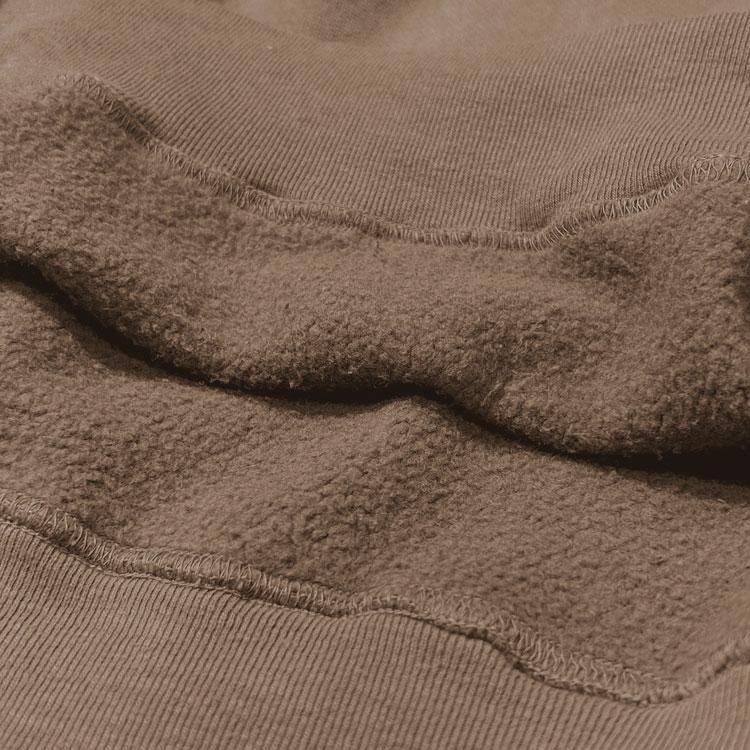 アズマの14GGの旧編機で編み上げた、肉厚でしっかりとした裏起毛は肌触りが良く暖かいです。