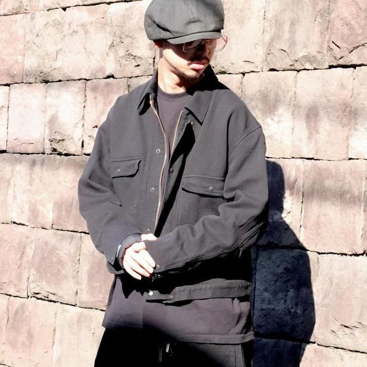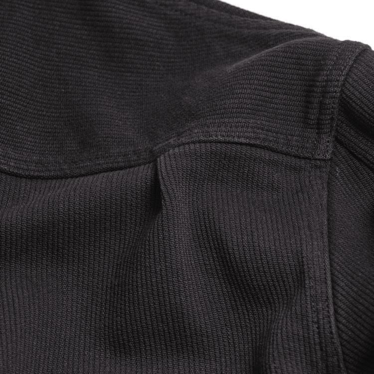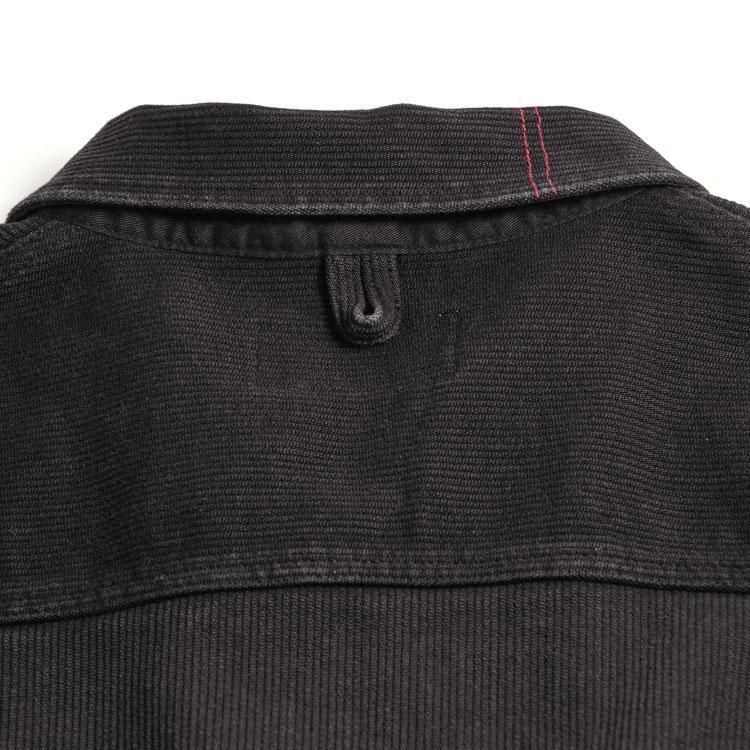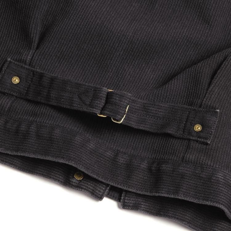 硫化染料による糸を太畝のピケ組織で織りたてた13oz先染め硫化ピケ生地は、一般的なものと比べ重厚感がありながらも柔らかさが特徴です。