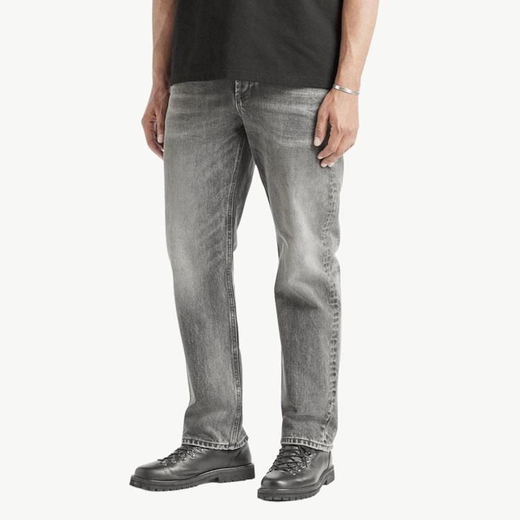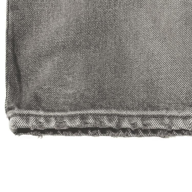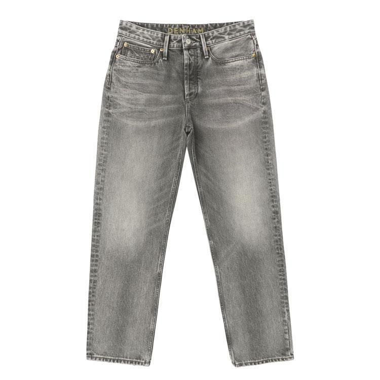 足首にかけてややゆとりのあるシルエットのデニムパンツ。
