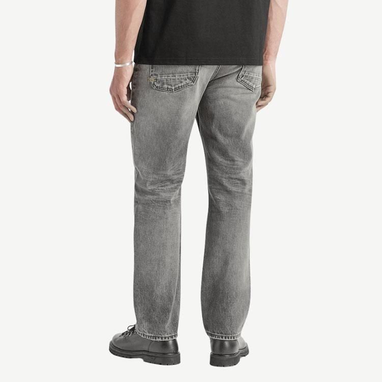クラシカルなボタンフライや七角形のバックポケット、アンティークライクなリベットがポイントです。