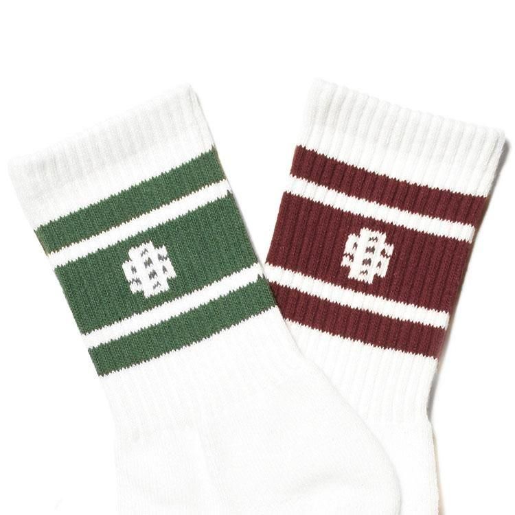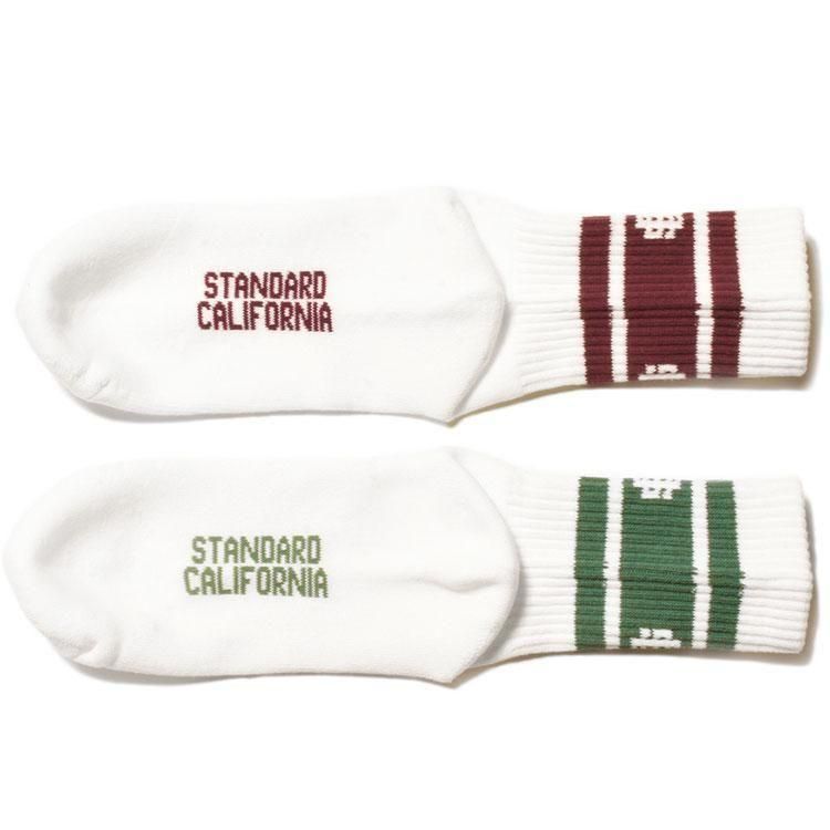 ホワイトのボディにオリーブのラインとバーガンディのライン、2足で1パックです。