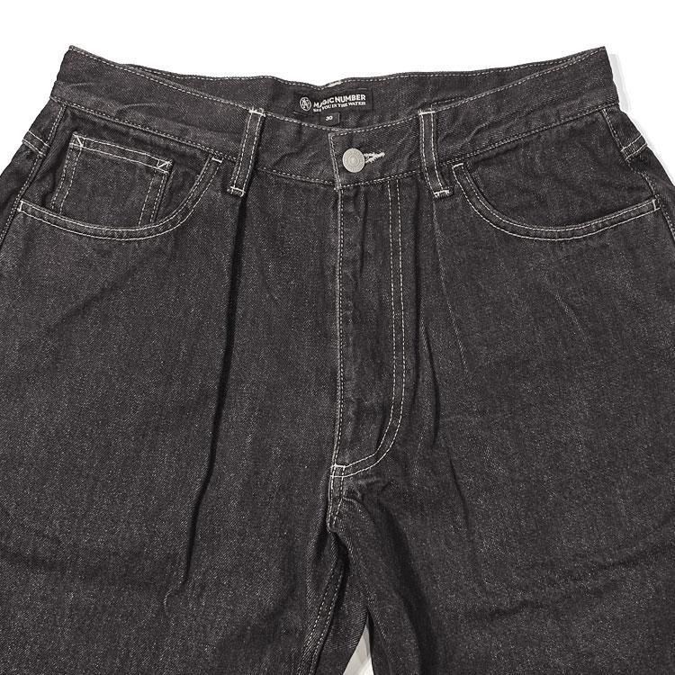 前身にタックを配置し、全体的にゆとりをもたせたシルエットのワイドデニム。