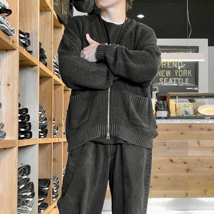 ざっくりとしたワッフル編みのコットンニットカーディガン。