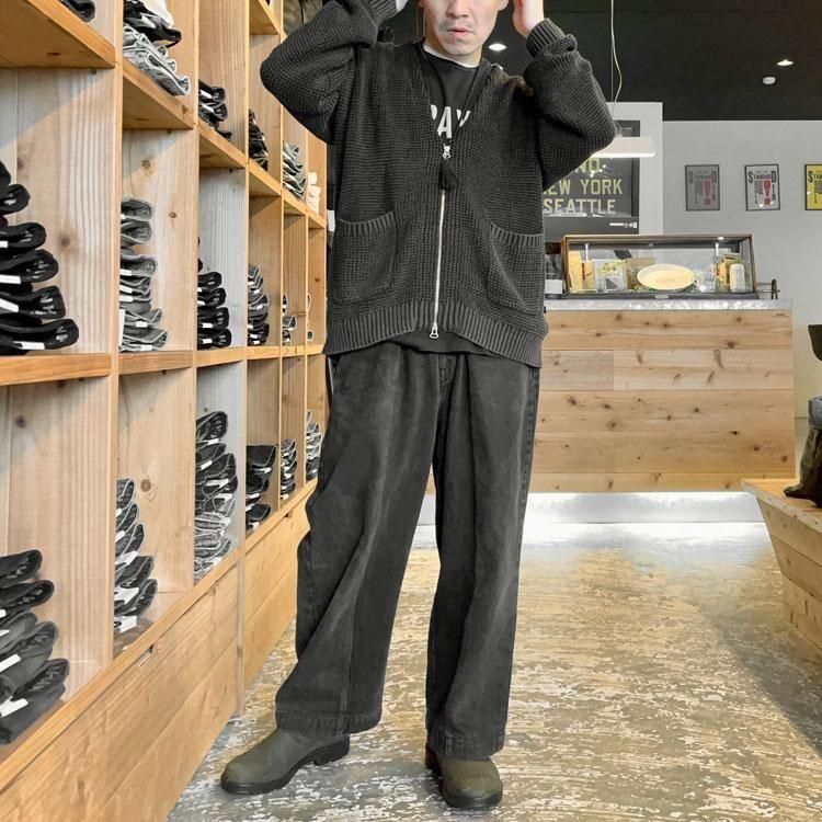 縫製後に酵素加工を施して表面のみを全体的にブリーチすることで、古着のような独特な凹凸感を表現しています。
