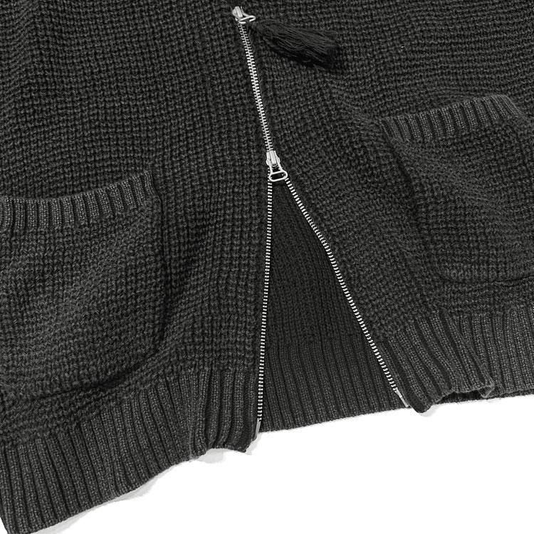 フロントは前立て付きのダブルジップ仕様で、上品なタッセルがあしらわれています。