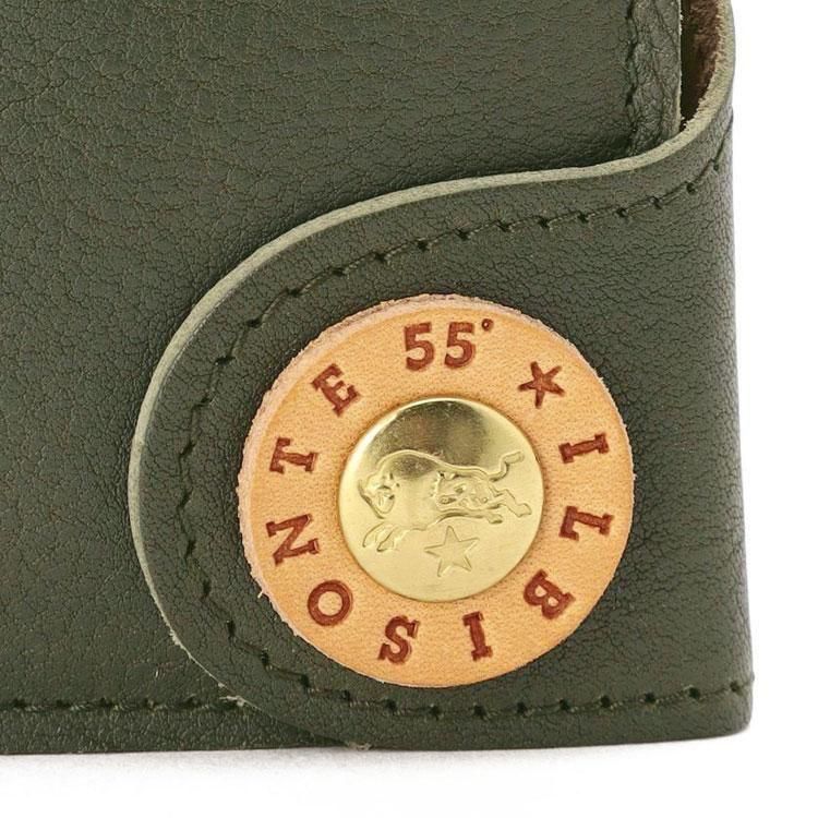 オリーブを思わせる日本初登場カラー「BOSCO(ボスコ)」とヌメのバイカラーで、「55」を刻印したレザーとお馴染みの水牛ボタンを組み合わせたコンビデザインの留め具がアクセントに。