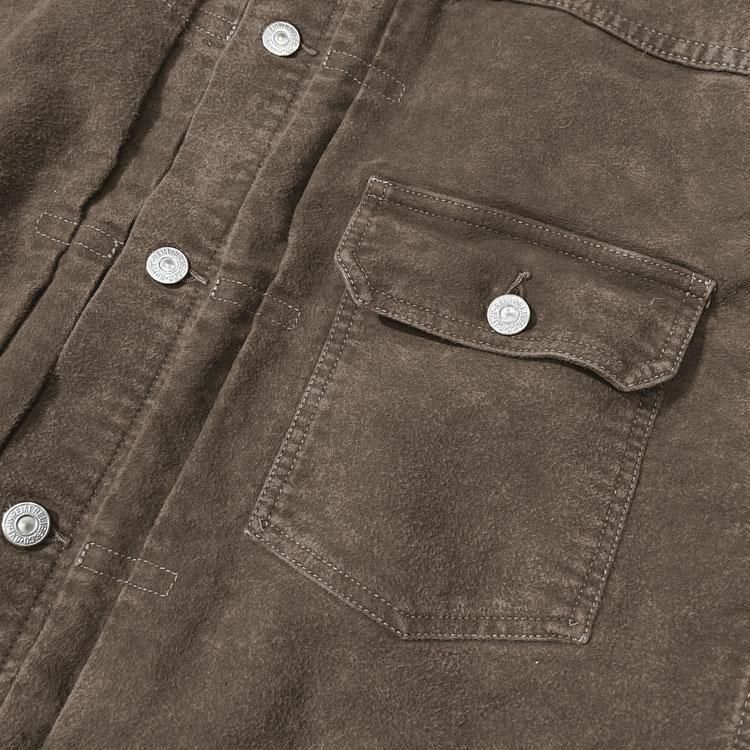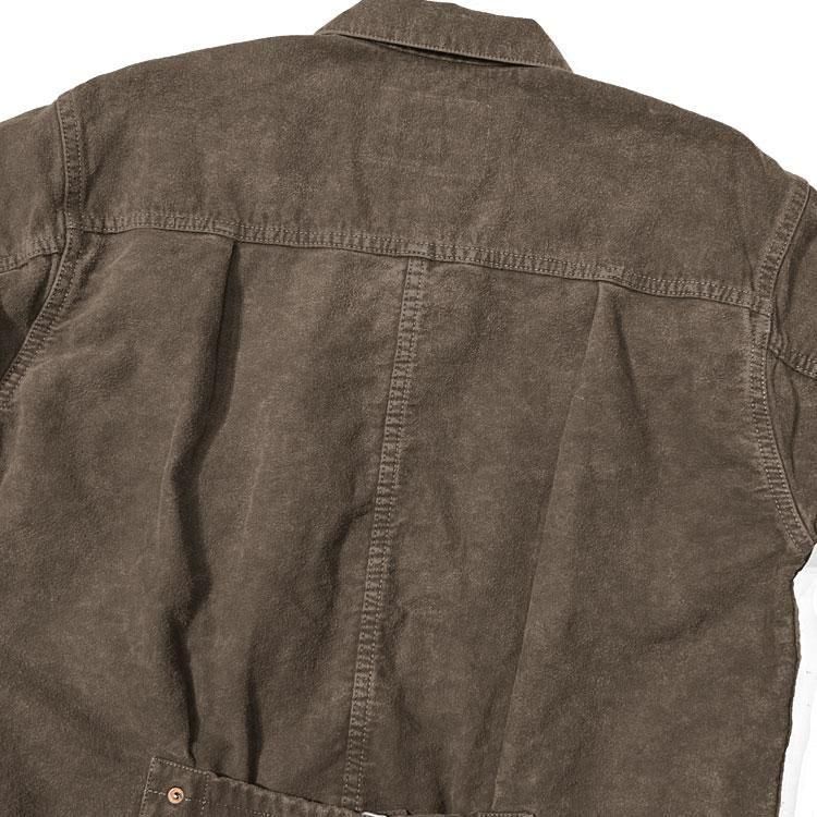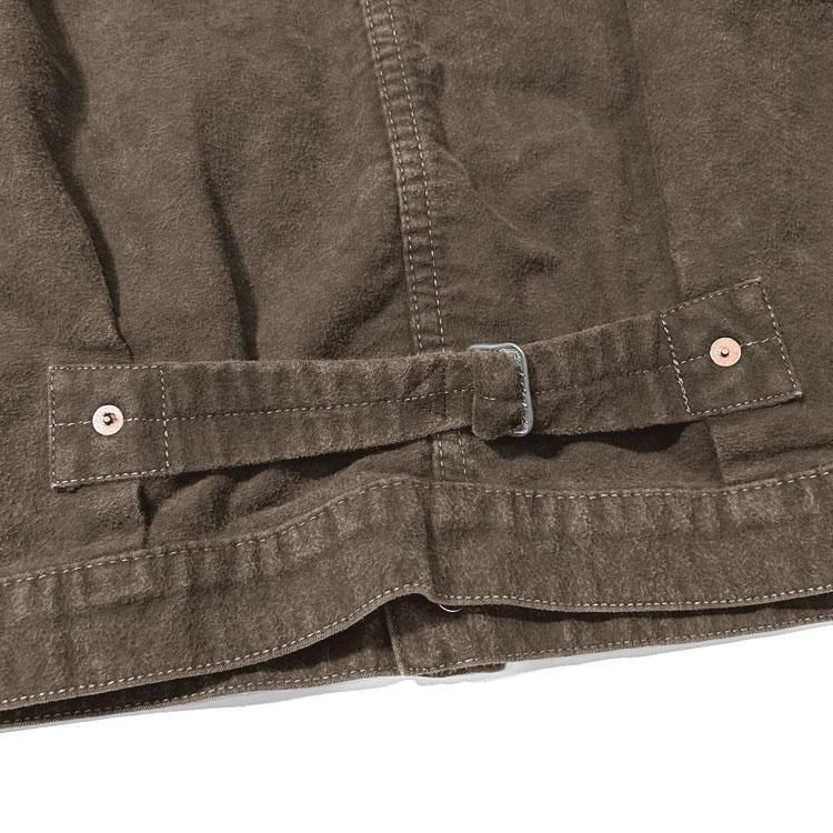 モールスキン特有の程よい厚みと柔らかさが着込むほどに身体になじみ、味わい深い風合いが増していくのが特徴。