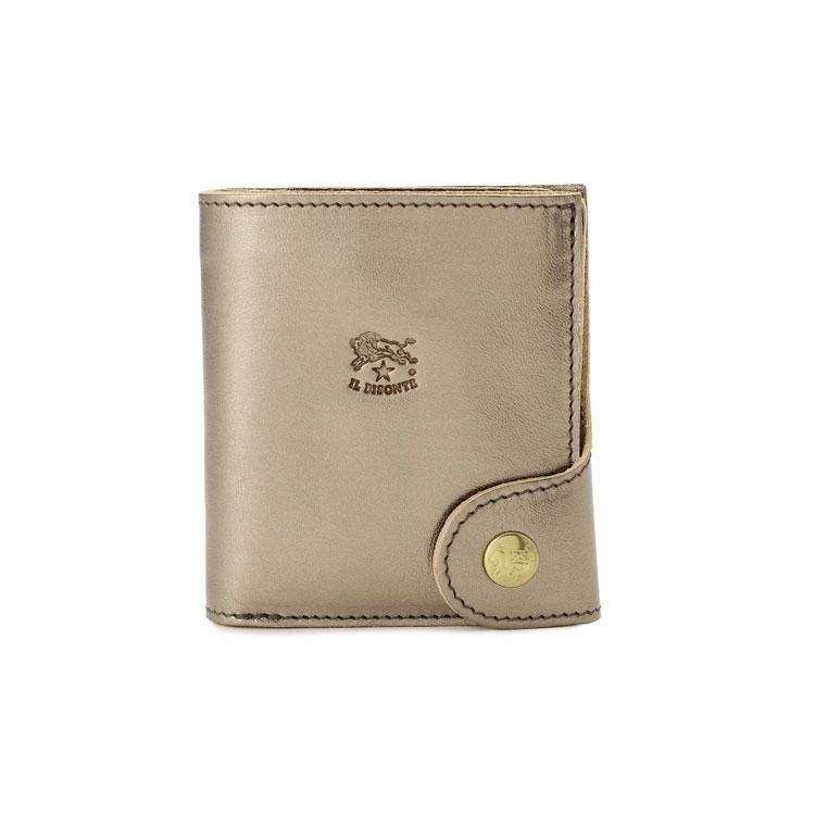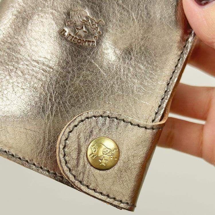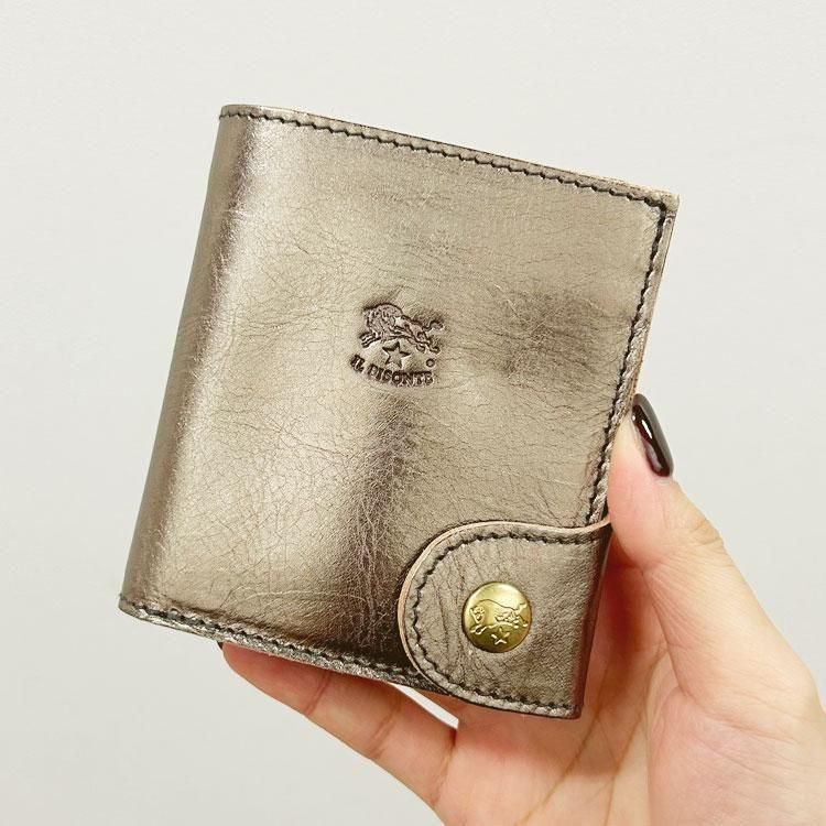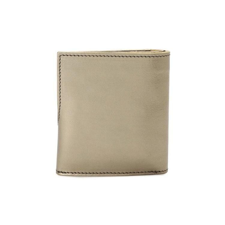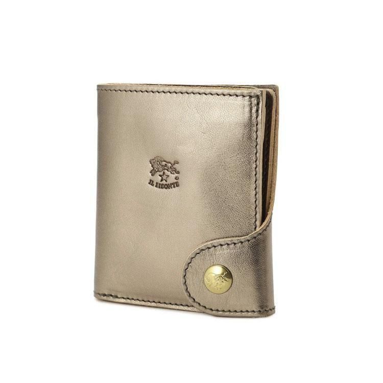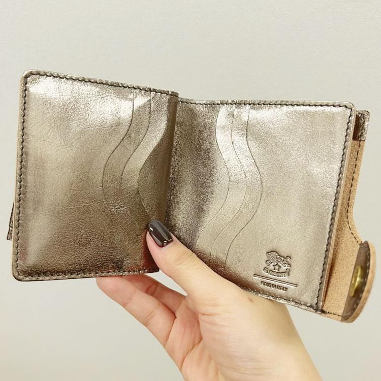 スナップボタンを開けると、出し入れしやすいスリットポケット仕様の札入れ、マチ付きコインポケットと3面のカードホルダーを備えています。